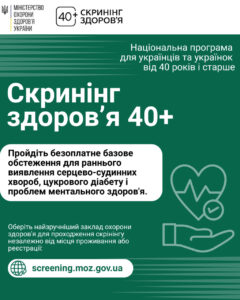 Міністерство охорони здоров’я спільно з партнерами запускає програму «Скринінг здоров’я 40+», яка спрямована на раннє виявлення серцево-судинних захворювань, цукрового діабету та проблем психічного здоров’я.
